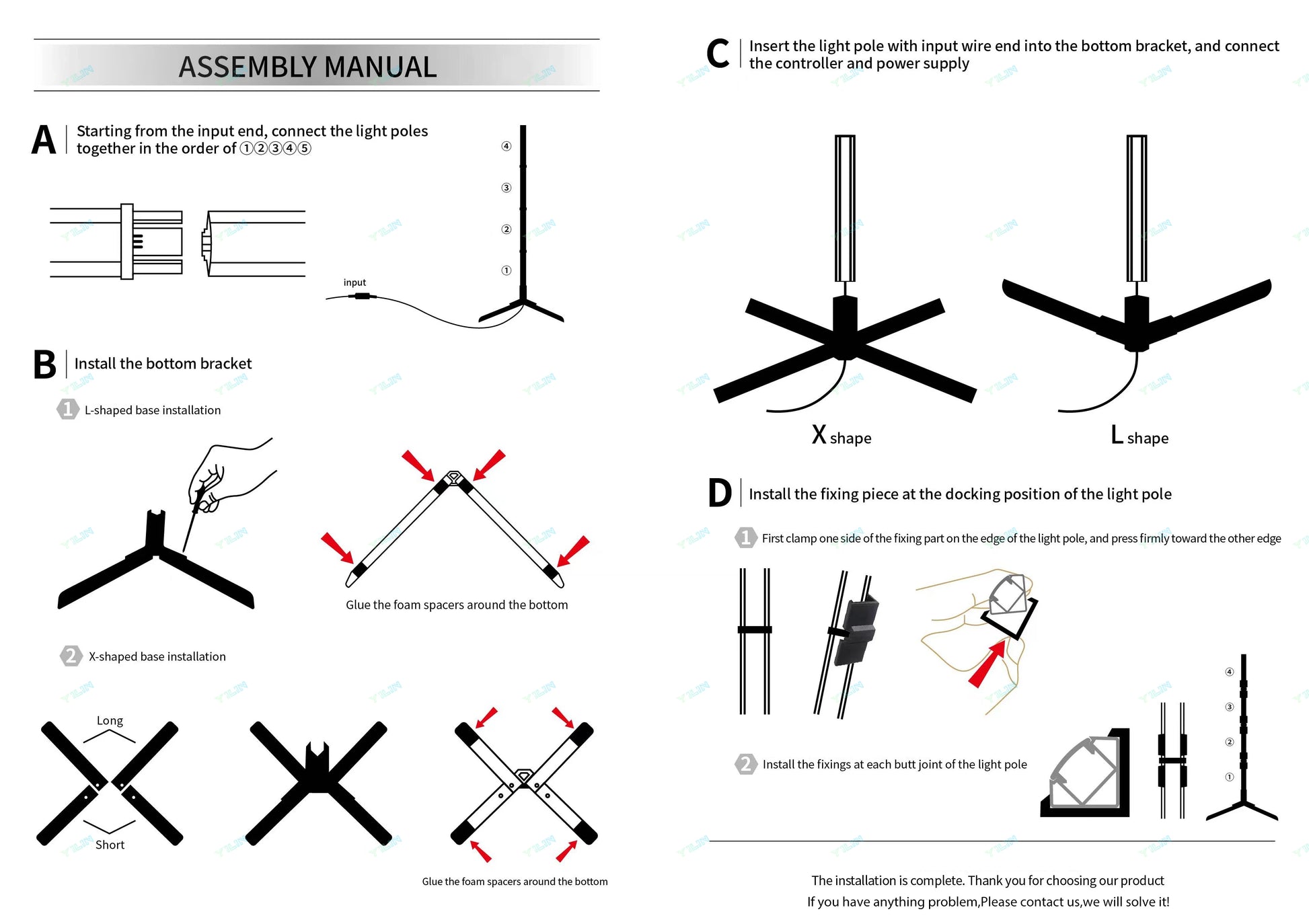 Note: 180cm needs to be firmly connected to the lamp body, and then adjust the angle to keep the lamp upright.