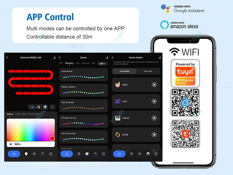 3. WIFI Type: Tuya APP + Smart Voice Control + Remote Control (Work with Amazon Alexa, Google Assistance etc.)